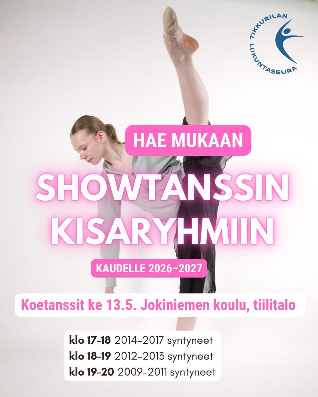 Haluatko kehittyä tanssijana, päästä esiintymään ja kilpailemaan ja sekä treenaamaan tavoitteellisesti osana tiivistä porukkaa? Hae mukaan showtanssin kisaryhmiin!